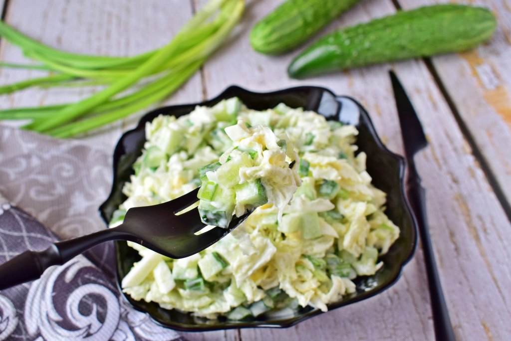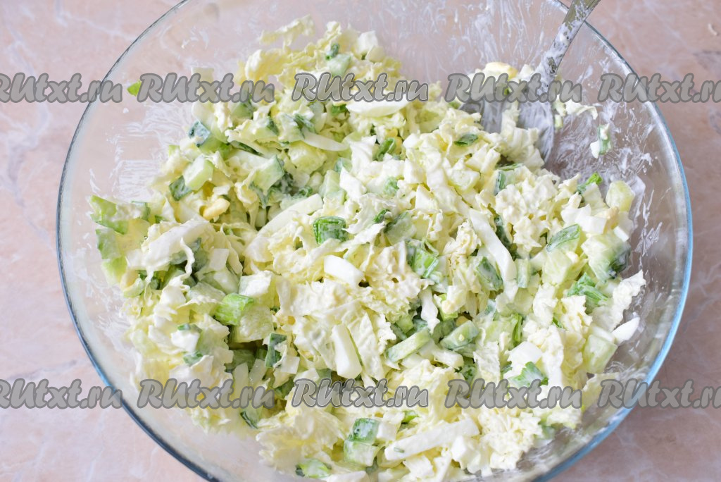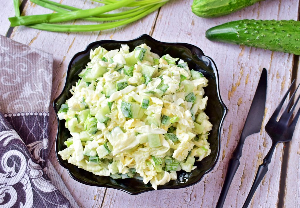 Для приготовления салатов я люблю использовать пекинскую капусту, ведь она мягче и нежнее, чем белокочанная. Салаты из неё получаются лёгкими и свежими. Я хочу поделиться рецептом вкусного, очень аппетитного салата с сочной пекинской капустой, варёными яйцами и свежим огурцом. Готовится это блюдо просто и достаточно быстро, а получается отличным, попробуйте!