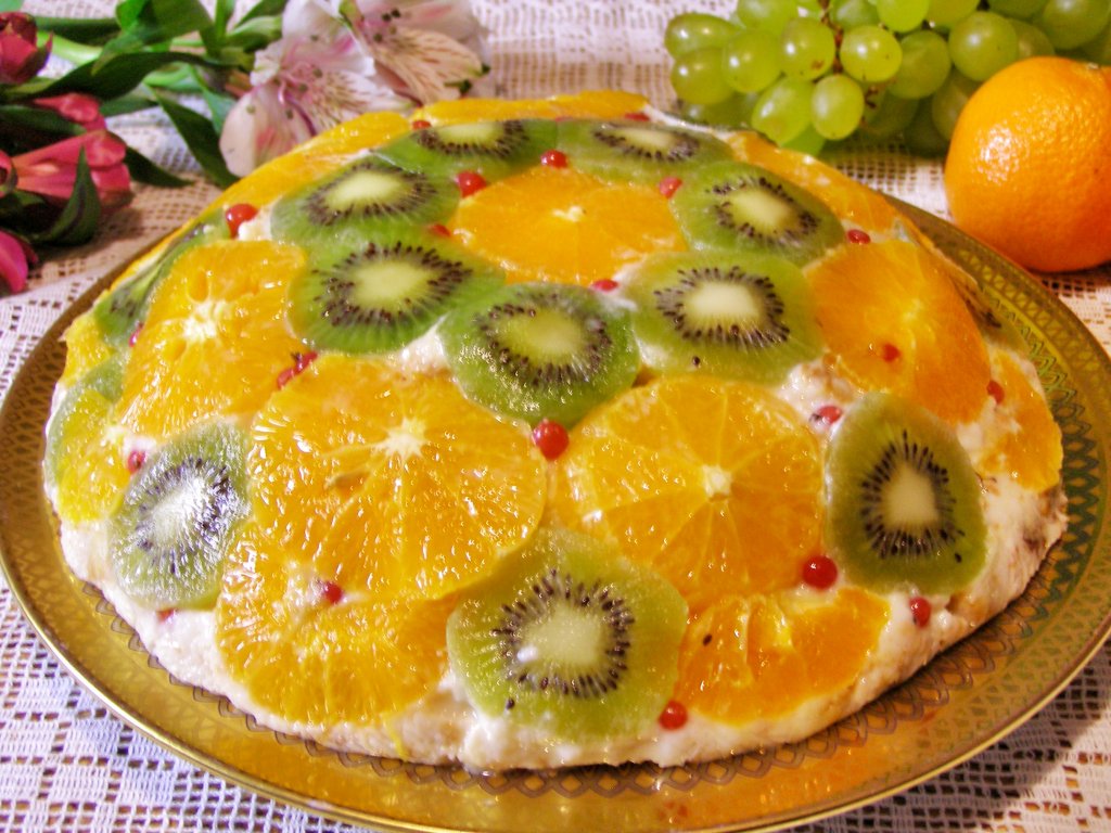 Желейный торт с фруктами и бисквитом - это удивительно красивый и яркий десерт, к тому же он очень вкусный и даже полезный. Для его приготовления можно брать любые фрукты или ягоды на свой вкус, например, апельсины, абрикосы, бананы, клубнику, вишню и малину, я использовала мандарин, киви и немного замороженных ягод красной смородины. Приготовьте этот замечательный желейный торт и он станет главным украшением праздничного чаепития!