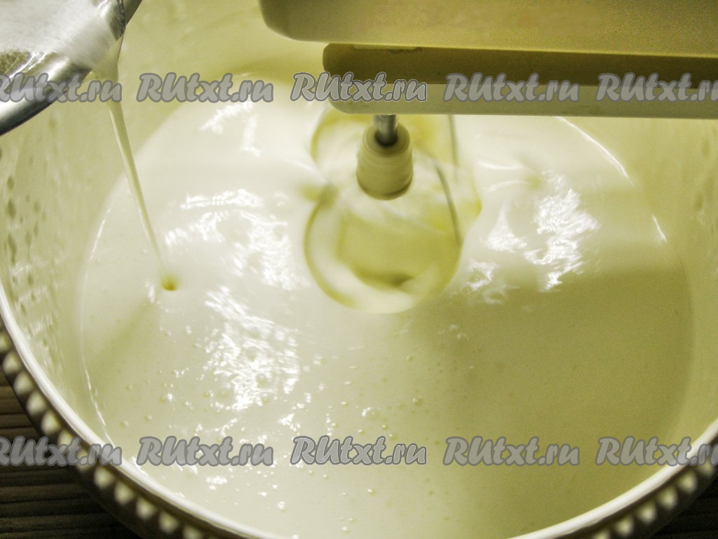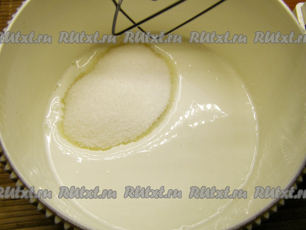 Сметану взбиваем с сахаром с помощью миксера до однородности в течение, примерно, 10 минут. Жирность сметаны не имеет значения, выбирайте на свой вкус.