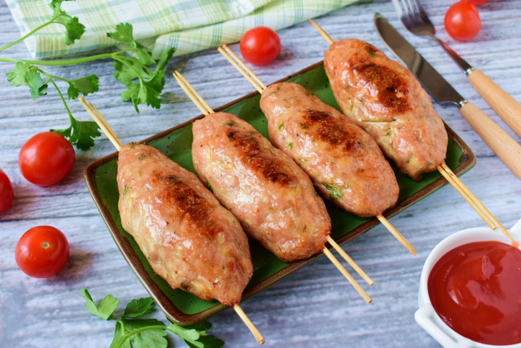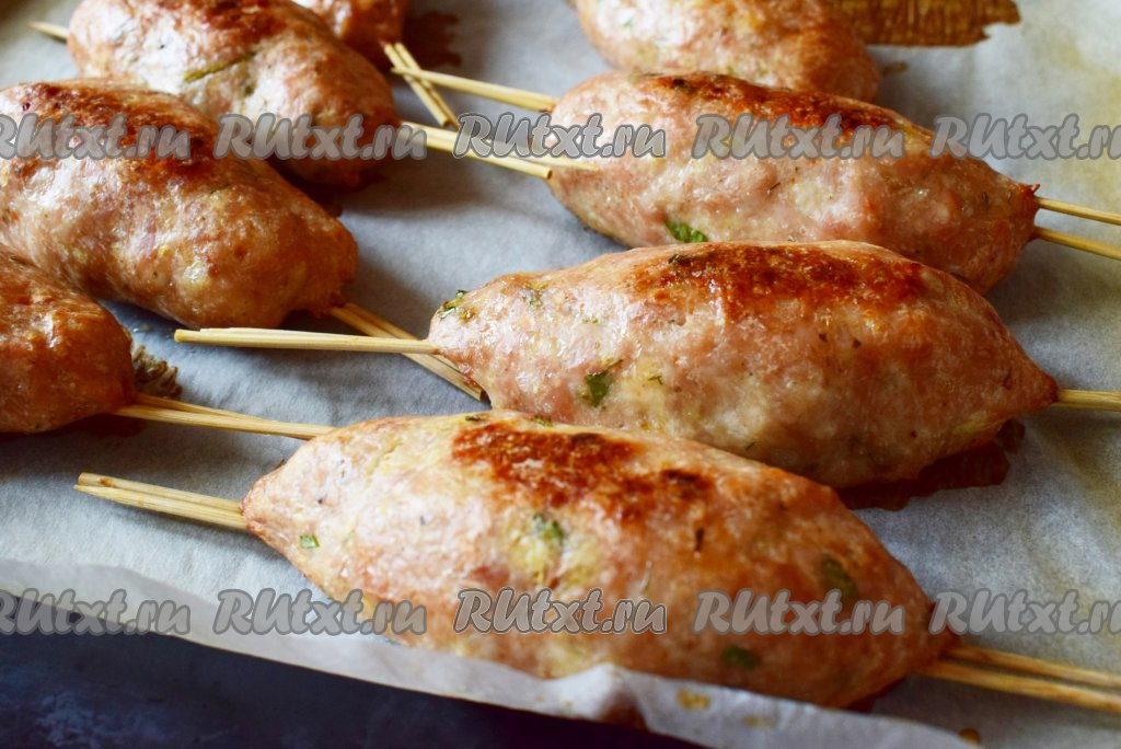 Люля-кебабы, приготовленные из курицы на шпажках в духовке, получаются аппетитными, сочными и очень вкусными. Угощайтесь!