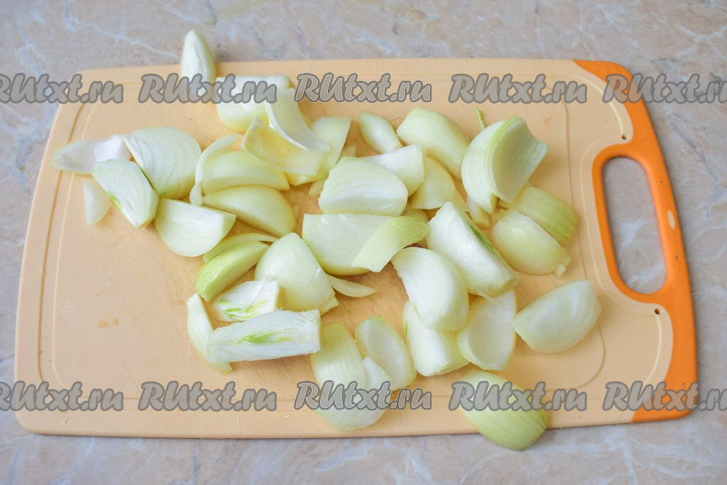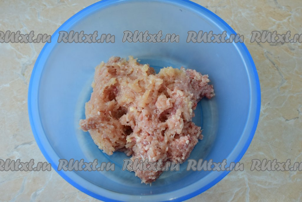 Очищенные луковицы нарежьте и тоже пропустите через мясорубку.
