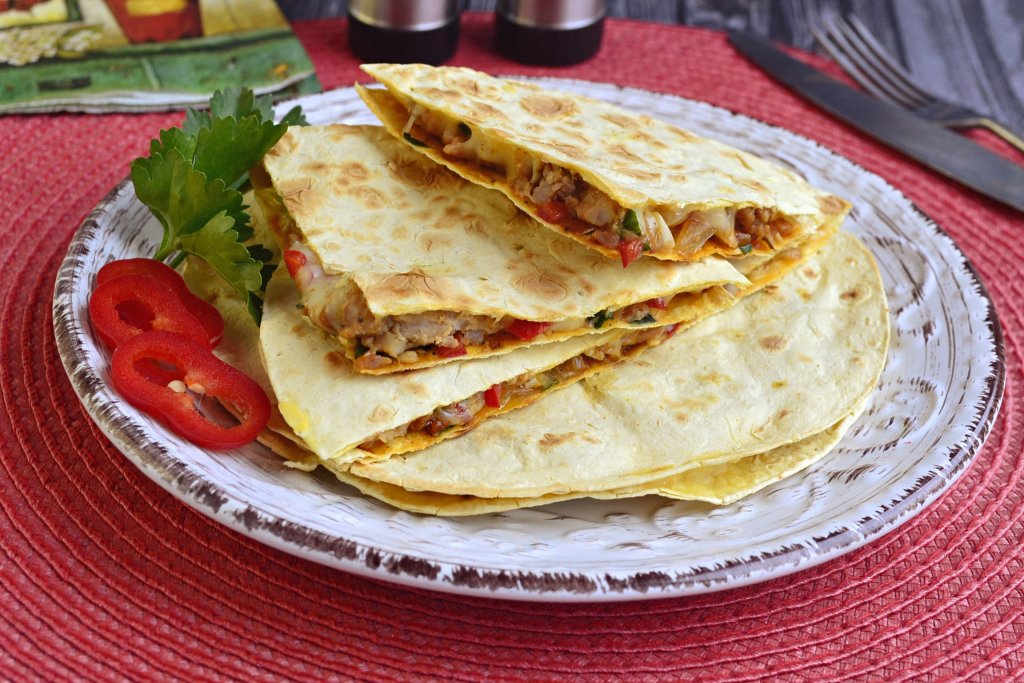 Кесадилья - блюдо, относящееся к мексиканской кухне. Чаще всего это кукурузные или пшеничные лепёшки с сырной начинкой. А я предлагаю приготовить кесадилью с фаршем и сыром - невероятно вкусное, сытное блюдо! Лепёшки немного подсушиваются на сковороде, а затем наполняются начинкой. В результате снаружи кесадилья получается хрустящей, а внутри - сочной и остренькой. Рекомендую вам это блюдо, тем более, что сделать его несложно!