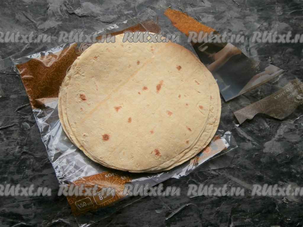 Кукурузные или пшеничные лепёшки для приготовления кесадильи можно купить практически в любом супермаркете. Подготовить лепёшки (у меня - готовые лепёшки "Тако").