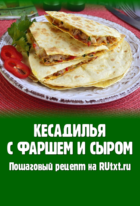 Очень вкусную, хрустящую и сочную кесадилью, приготовленную с фаршем и сыром, разрезать на 2-4 части и сразу подать к столу, пока она горячая.