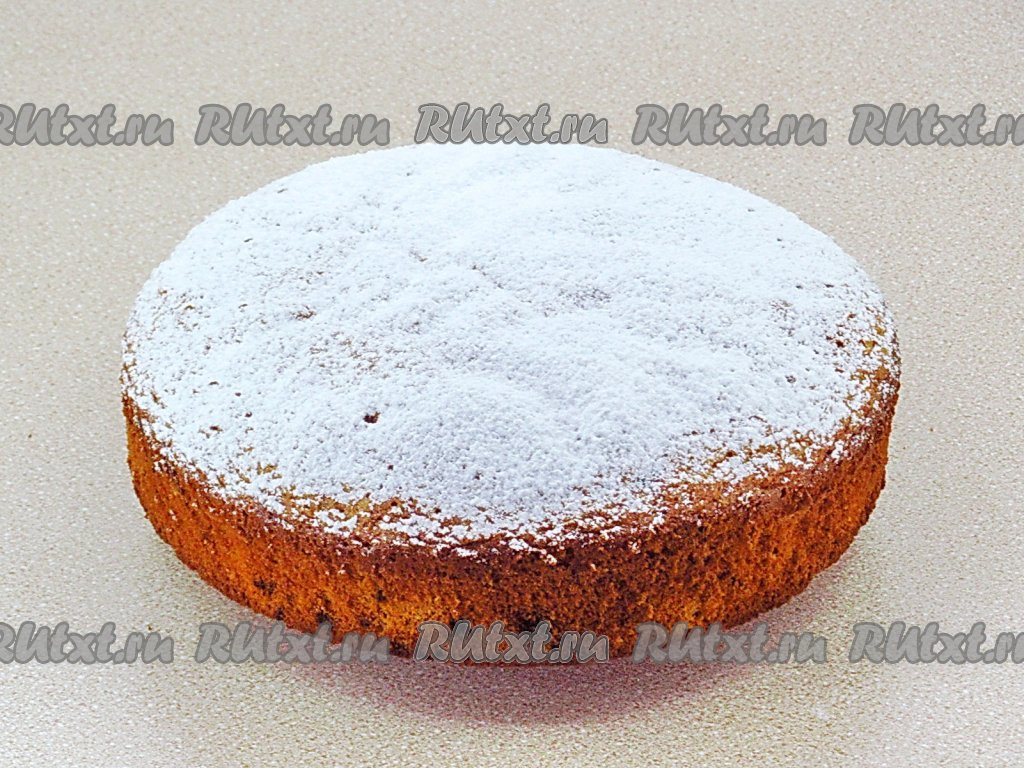 Остывший бисквит с курагой щедро посыпать сахарной пудрой.