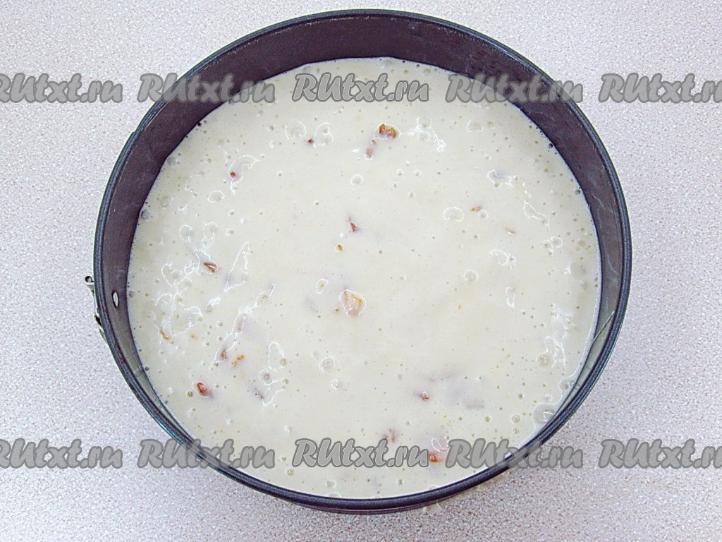 Выложить в форму получившееся бисквитное тесто с курагой и разровнять его.