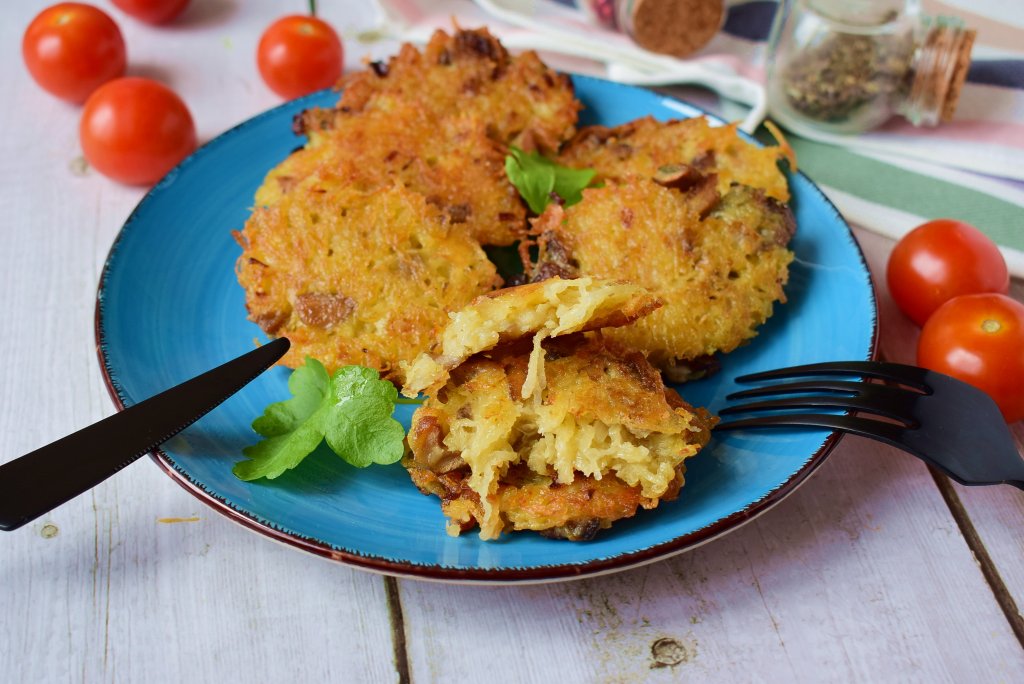 Драники - очень популярное блюдо и вариантов их приготовления немало. Я предлагаю совсем несложный рецепт картофельных драников. Особенность их в том, что к натёртой картошке добавляются натёртые грибы и сыр. Блюдо получается и вкусным, и сытным, и ароматным. Грибы можно использовать любые: лесные грибы, шампиньоны, вешенки или маринованные грибочки. Приготовьте такие драники и насладитесь их приятным вкусом и ароматом!
