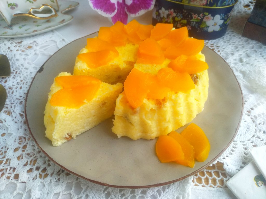 Запеканку достать из микроволновки, остудить, переложить из формы на тарелку для подачи. Украсить десерт по желанию (я украсила консервированными персиками) и подать к столу. У творожной запеканки с манкой нежная структура, сладкий вкус и аппетитный вид. Это блюдо станет и отличным завтраком, и прекрасным десертом для всей семьи!