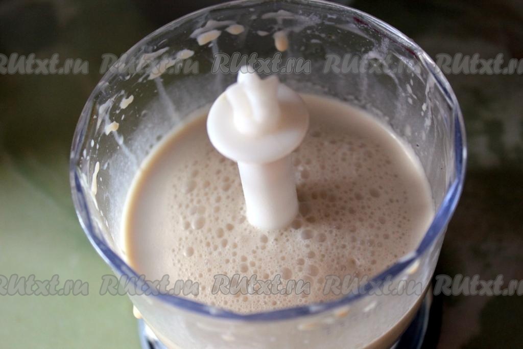 Взбейте ингредиенты в блендере на высоких оборотах или в режиме "Турбо" до однородного состояния и до образования пышной пенки.