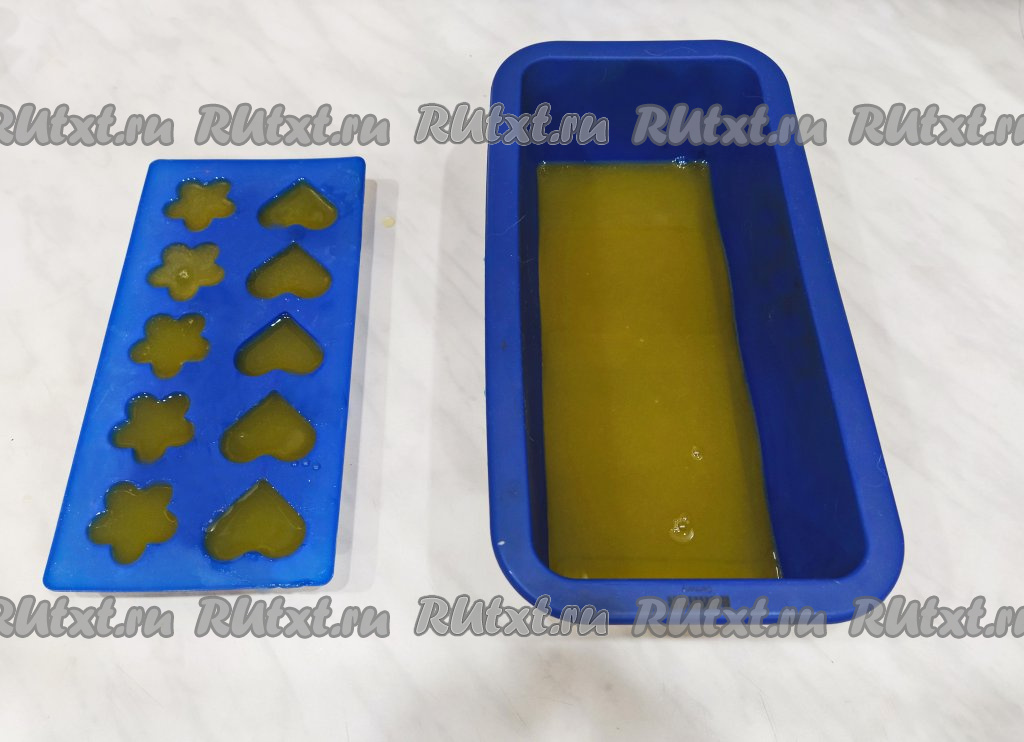Апельсиновый сироп снять с огня и сразу разлить по заранее подготовленным формочкам (обратите внимание, что агар-агар достаточно быстро застывает при комнатной температуре, поэтому делать нужно всё быстро). Лучше всего для приготовления мармелада подходят силиконовые формочки (или можно использовать любую другую ёмкость прямоугольной или квадратной формы, предварительно застелив её пищевой плёнкой).