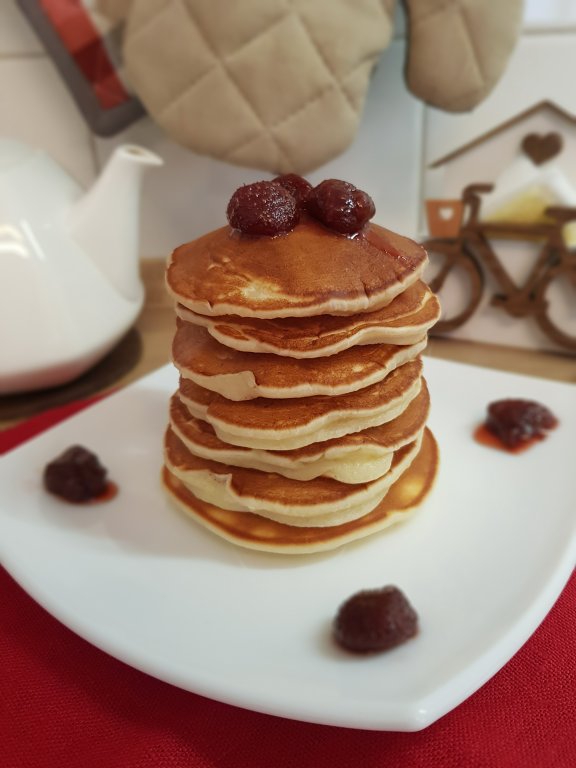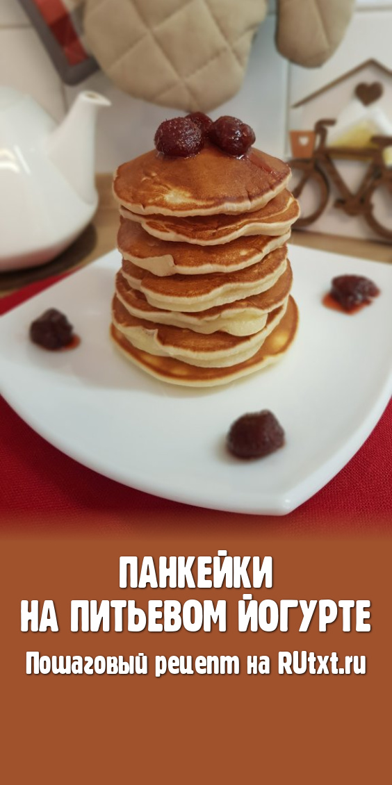 Таким образом пожарить на сухой сковороде все панкейки. Вкуснейшие, нежные, пышные панкейки, приготовленные на питьевом йогурте, полить вареньем, мёдом и подать к столу в тёплом виде к чашечке чая или кофе.