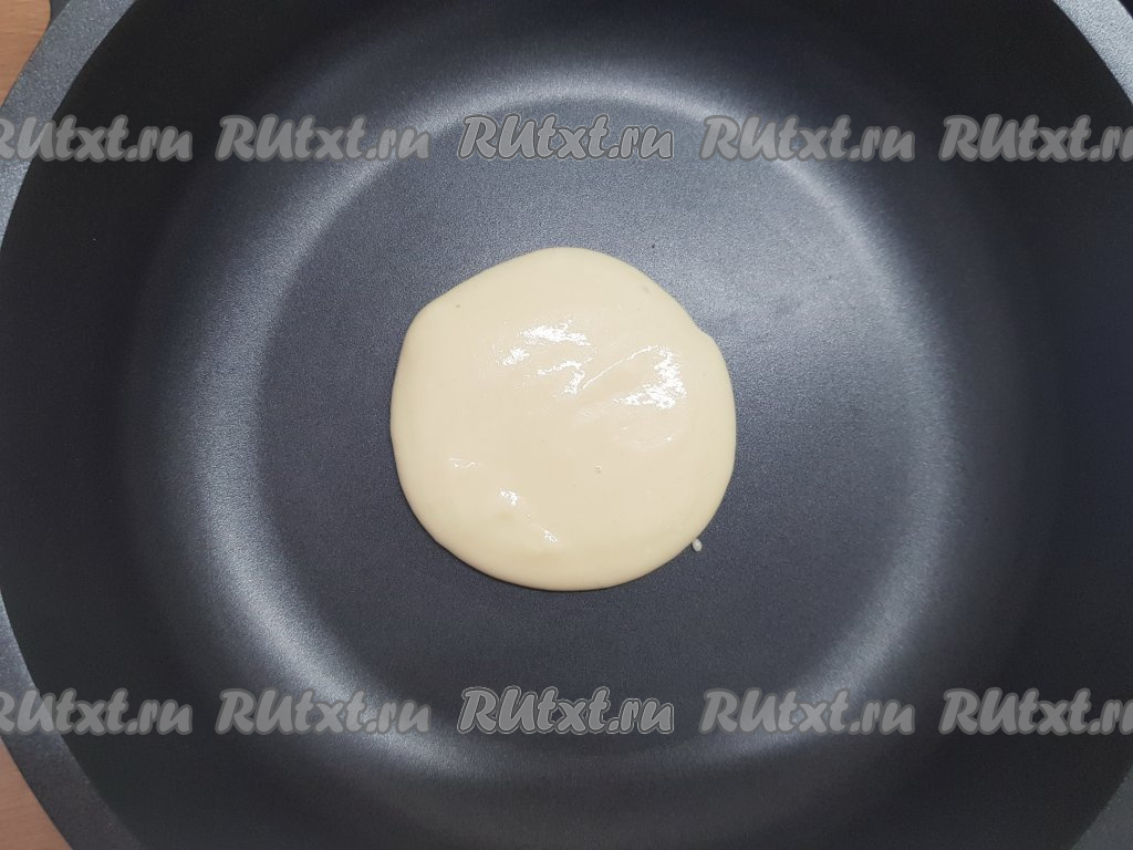 Сковороду разогреть (смазывать маслом не нужно), влить в центр 2 неполные столовые ложки теста в виде круга.