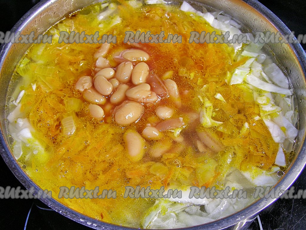 Для приготовления этих щей можно взять как красную, так и белую консервированную фасоль в собственном соку или в томате. Если у вас фасоль в собственном соку, то этот сок желательно слить. По желанию, в фасоль можно добавить 1-2 столовые ложки томатной пасты.