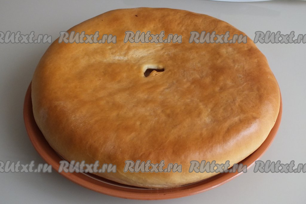 Слегка натягивая краешки верхнего пласта теста, подверните их под нижний пласт. В центре пирога сделайте отверстие для выхода пара. Прикройте полотенцем подготовленный пирог и оставьте на 15 минут на расстойку.