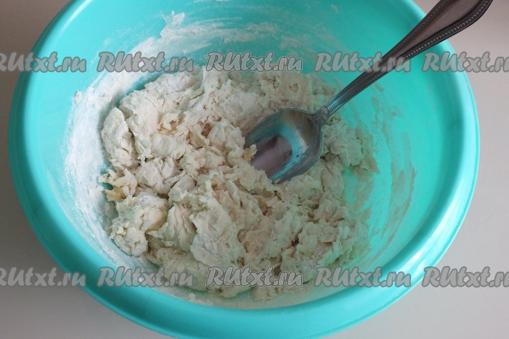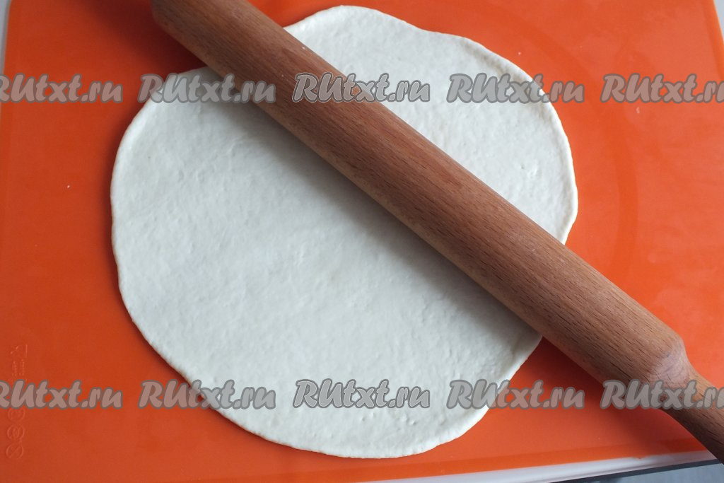 Раскатайте каждую часть теста на припылённой мукой поверхности в пласт толщиной 0,3-0,5 см.