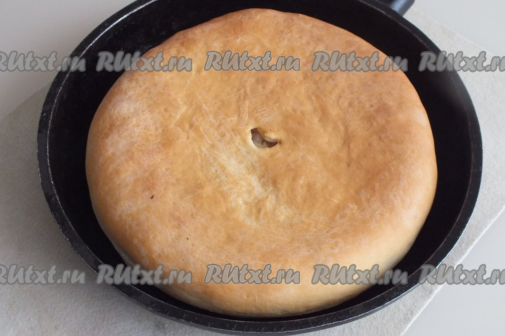 Через указанное время достаньте готовый пирог из духовки. Он будет равномерно красивого, румяного цвета.