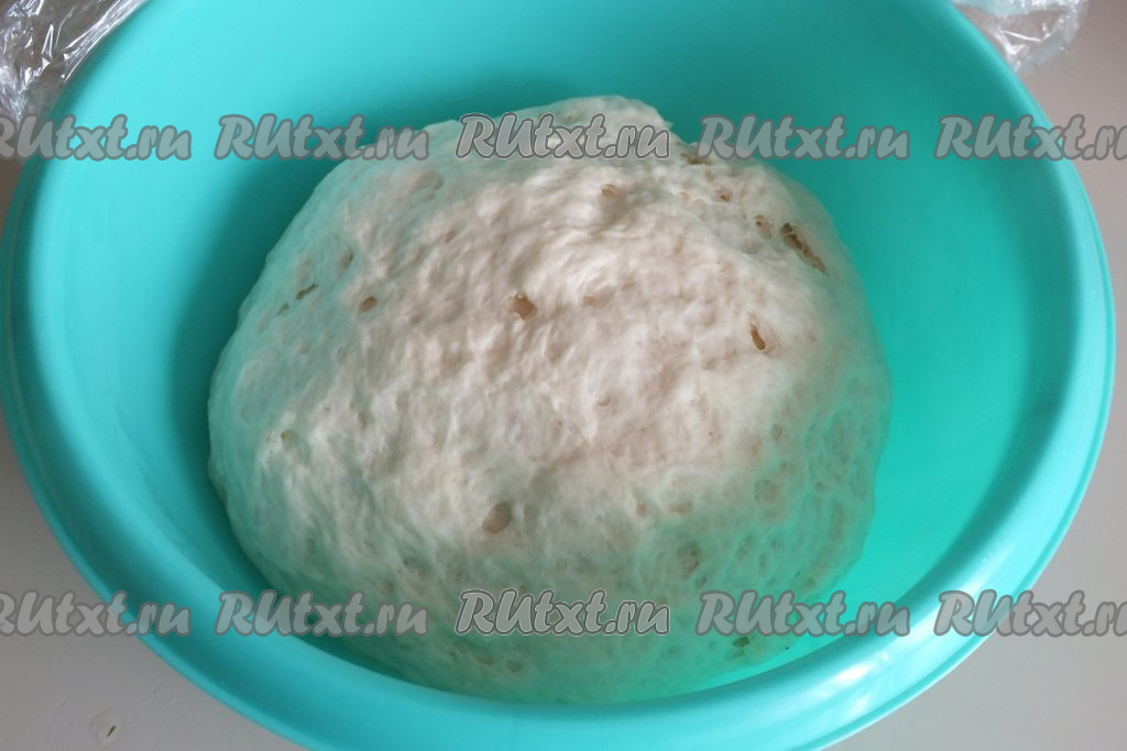 Тесто должно получиться пластичным, податливым, не липнущим к рукам. Миску с тестом затяните пищевой плёнкой и уберите в тёплое место без сквозняков на 1 час 30 минут.