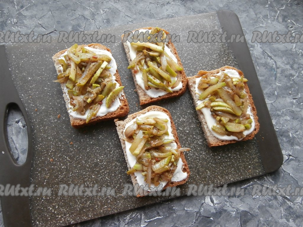 Подать вкуснейшие бутерброды с жареными кабачками к столу.