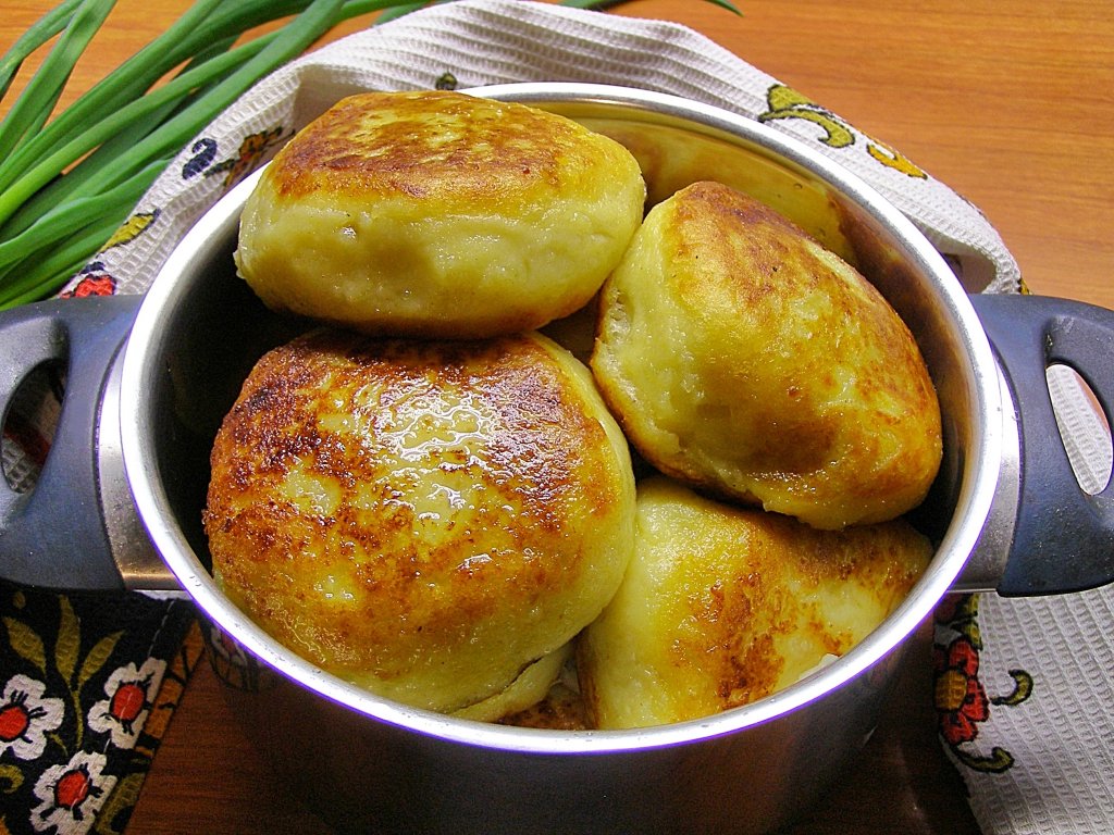 Готовые зразы перекладываем к глубокую кастрюлю, накрываем крышкой и даём постоять на медленном огне минут 10-15. Подаём аппетитные и сочные картофельные зразы с мясным фаршем либо в горячем виде с салатом или свежими овощами, либо остывшими к чаю или кофе.