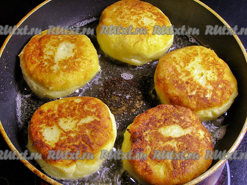 В сковороду наливаем подсолнечное масло (масла должно быть, примерно, 1 см от дна сковороды) и сильно его разогреваем. В горячее масло выкладываем подготовленные картофельные зразы с мясным фаршем.