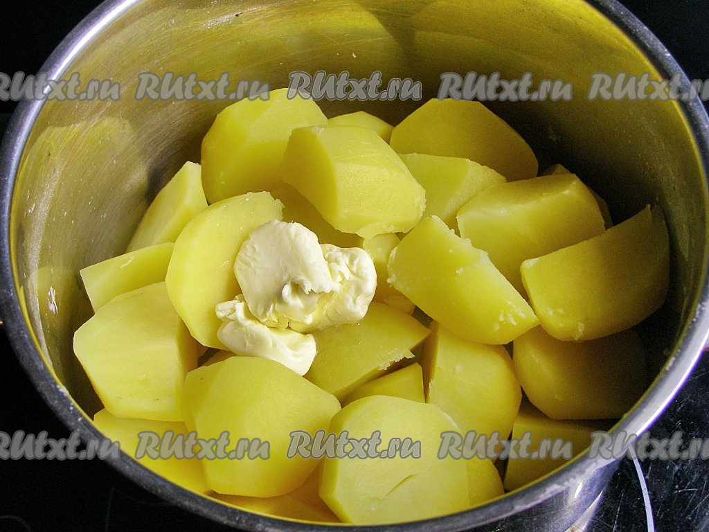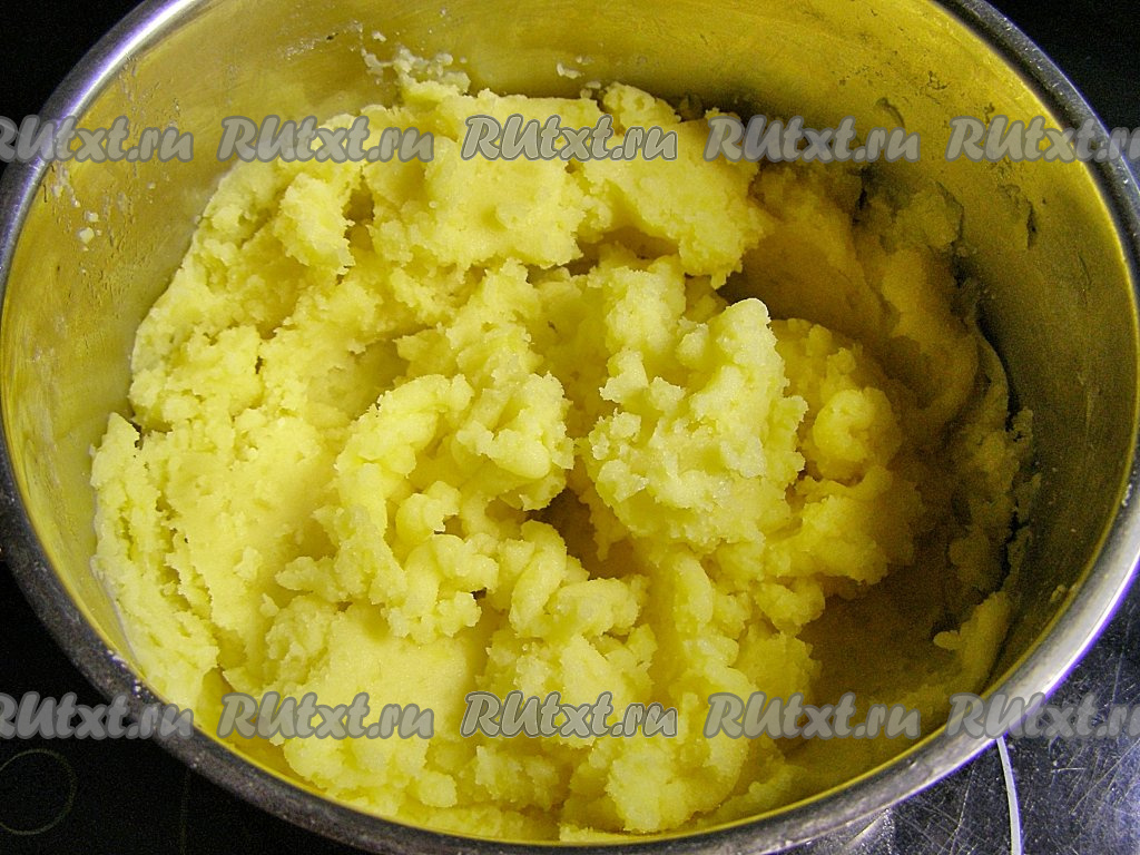 Тщательно разминаем картофель в пюре, чтобы не осталось крупных кусочков. Блендером пользоваться не советую, так как картофельное пюре получается "резиновым". Оставляем пюре остывать до комнатной температуры.
