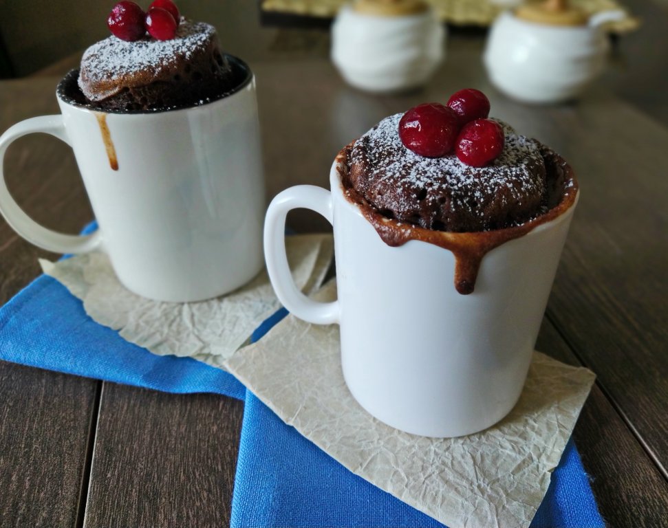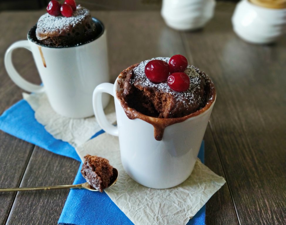 Когда нужно что-то очень быстро испечь к чаю, меня выручает рецепт приготовления шоколадного кекса в кружке в микроволновке, которым я с удовольствием делюсь с вами. Выпекается этот кекс всего 3 минуты. Для его приготовления нужны лишь микроволновая печь, вполне доступные продукты и кружка, в которой и будет выпекаться кекс. В этой же кружке и будем перемешивать все ингредиенты. Выпечка получается пышной и высокой, поэтому тесто не должно заполнять более половины объёма кружки (если тесто заполняет больше половины объёма, то лучше разделить его на две кружки). Готовую выпечку можно посыпать сахарной пудрой или, например, пропитать сметанным кремом, или взбитыми сливками, добавить ягоды и у вас получится идеальный десерт!