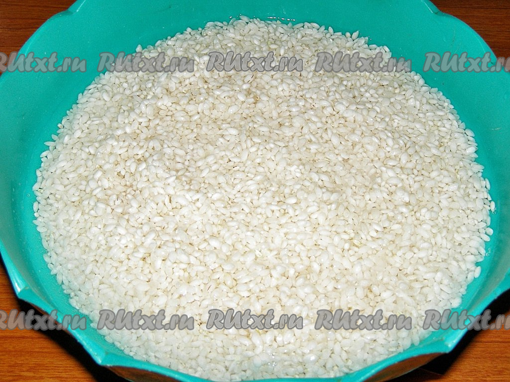 Сначала подготовим рис. Промываем его холодной проточной водой до тех пор, пока вода после промывания риса не станет прозрачной. Затем заливаем рис свежей холодной водой так, чтобы она полностью покрывала рис и оставляем его на время, пока будем готовить зирвак.