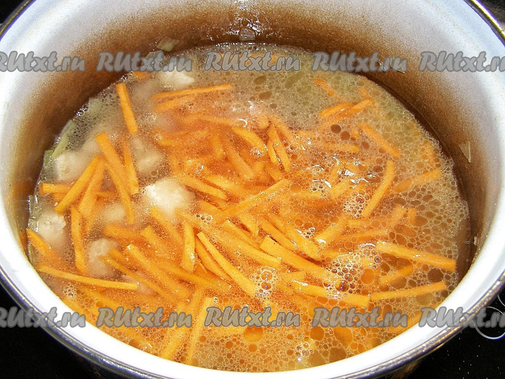 Перекладываем в кастрюлю нарезанную морковь, разравниваем её по поверхности.
