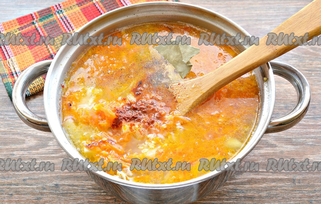 В конце приготовления досолить щи, добавить по вкусу молотые чёрный перец и паприку.