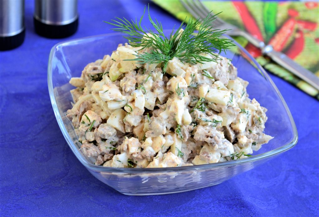 Салат, приготовленный из куриной печени с яйцами, сыром и маринованным луком, - простой, сытный и необычайно вкусный салатик, который можно подать на ужин или предложить гостям. Благодаря добавлению маринованного лука, вкус у этого блюда запоминающийся. Такому салату не надо настаиваться, как только вы смешали все ингредиенты и добавили майонез, его можно подавать к столу. Для тех кто не любит майонез, его в этом салате можно заменить на сметану, немного досолив по вкусу.
