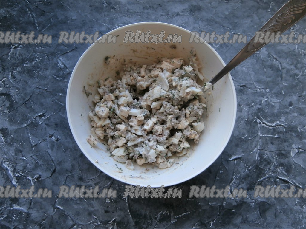Затем добавить майонез, перец и соль по вкусу.