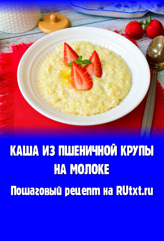 Пшеничную кашу на молоке можно приготовить в качестве вкусного и сытного завтрака. Она соединяет в себе изумительный вкус и неоспоримую пользу. Если используете молоко высокой жирности (например, от домашней коровы), то его можно немного разбавить водой. Перед подачей кашку можно дополнить сливочным маслом, свежими ягодами или фруктами. Сварите молочную пшеничную кашу по этому рецепту и она порадует вас отличным вкусом и насытит до самого обеда.