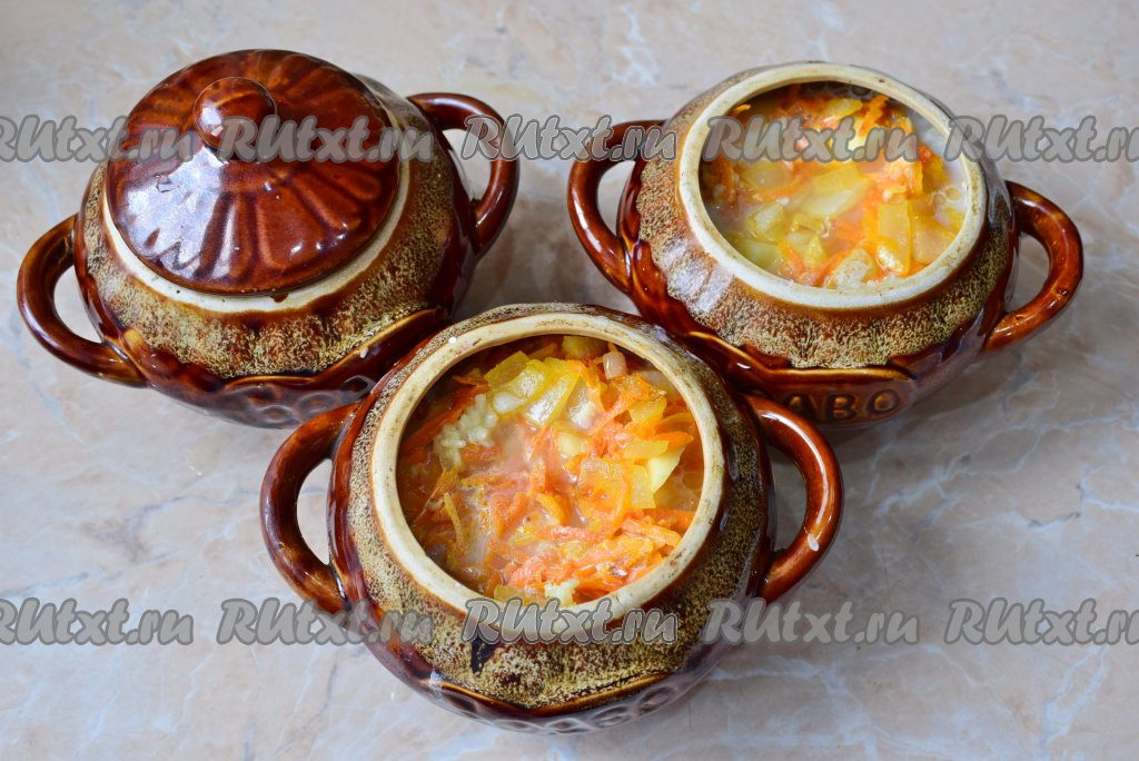 Добавьте в каждый горшочек по зубчику измельчённого чеснока и залейте содержимое горшочка сливками, заполняя на 2/3 объёма. Наполнять горшочки под самую крышечку не надо. При запекании всё будет активно кипеть. Накройте горшочки крышечками и поставьте в холодную духовку. Включите нагрев до 180 градусов и держите горшочки в духовке 30-40 минут. Ориентируйтесь по своей духовке. Спустя указанное время духовку выключите и оставьте жаркое в горшочках там постоять ещё минут на 20.