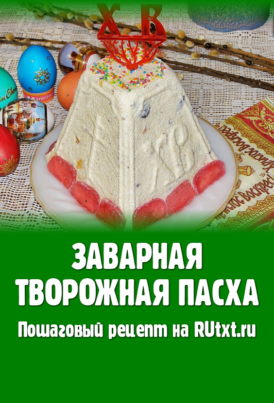 На праздник Пасхи многие красят яйца, пекут куличи. Предлагаю приготовить к праздничному столу заварную творожную пасху. Получается эта пасха необыкновенно ароматной, мягкой и тающей во рту, в меру сладкой и удивительно вкусной. Для более яркого вкуса в этот творожный десерт, по желанию, можно добавить сухофрукты, орехи, цукаты и лимонную цедру, но и без дополнений получается отлично. Красивая, нежнейшая заварная пасха, наверняка, придётся по вкусу и детям, и взрослым!
