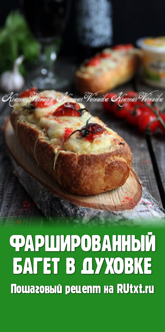 Вот такой аппетитный фаршированный багет мы получили после запекания в духовке.