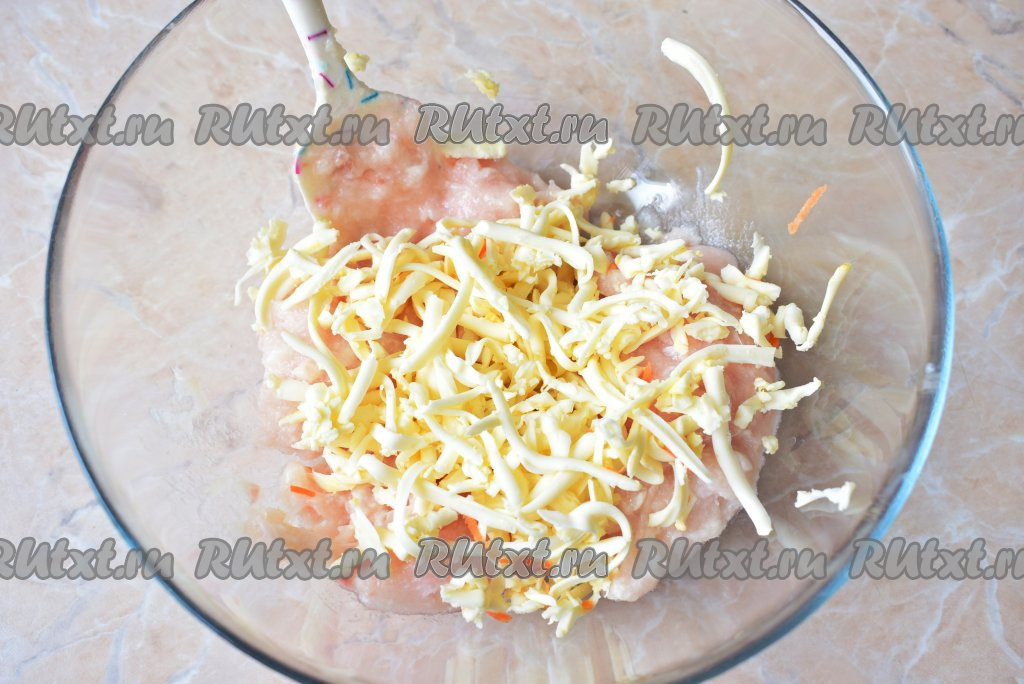 Плавленный сыр натрите на тёрке сразу в чашу к рыбному фаршу.