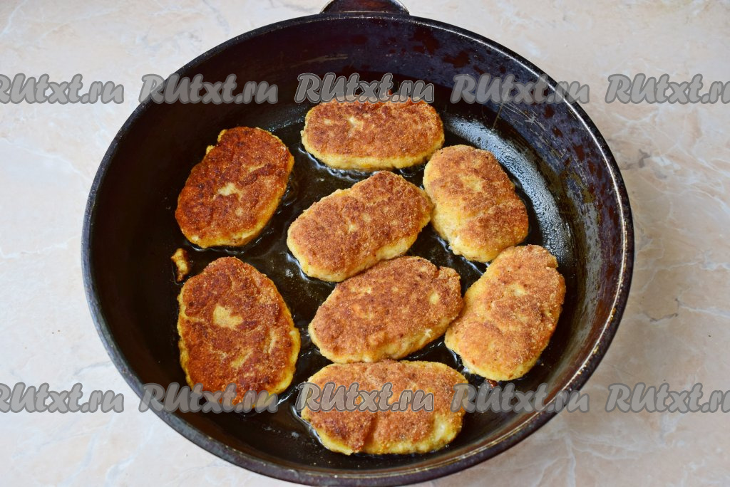На горячую сковороду налейте немного растительного масла и обжаривайте рыбные котлеты с сыром на среднем огне по 3-4 минуты с каждой стороны.