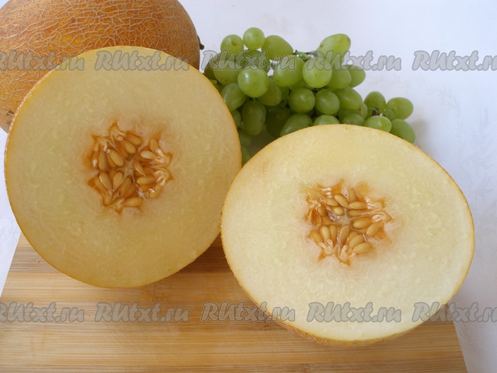 Дыню разрезать на 2 части (примерно на 1/3 и 2/3), вычистить косточки.