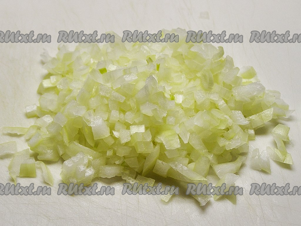 Луковицу среднего размера очищаем, а затем нарезаем мелко (или натираем на крупной тёрке).