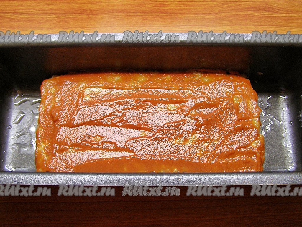 Смесью томатной пасты и горчицы обмазываем верх и бока сформированного мясного хлеба. Вместо томатной пасты и горчицы можно обмазать мясной хлеб просто кетчупом или только пастой. Ставим мясной хлеб в прогретую до 180 градусов духовку на 40 минут.