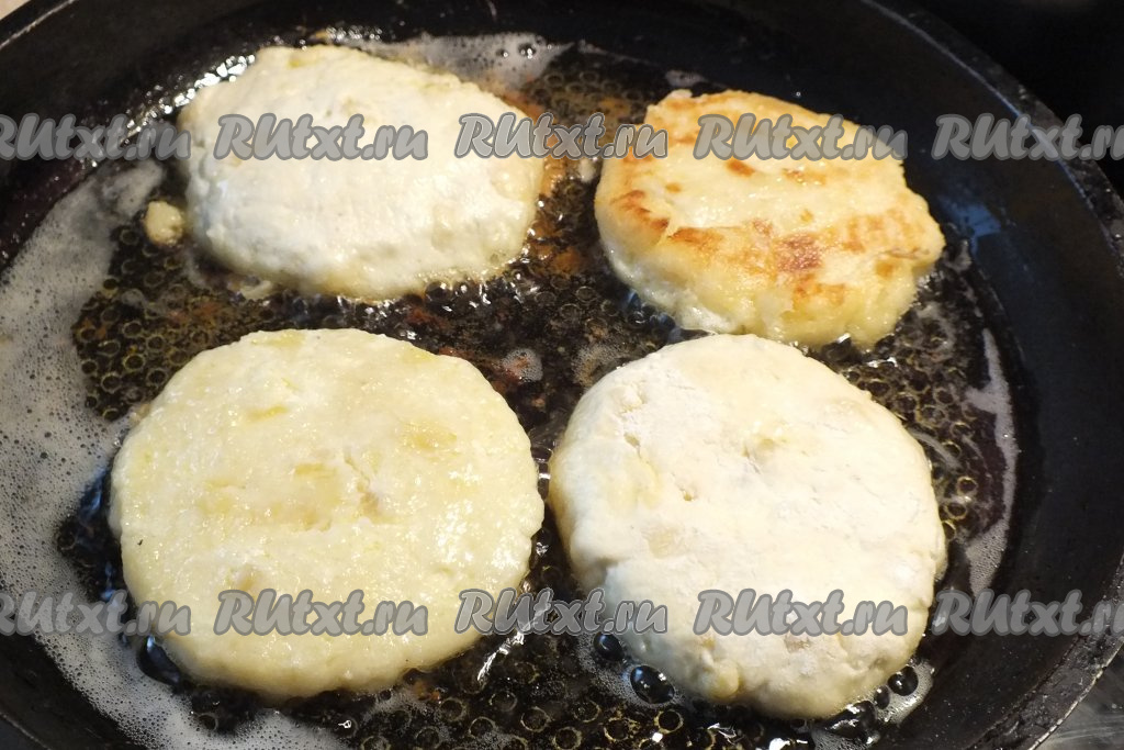 В сковороде разогрейте растительное масло. Выложите подготовленные творожно-банановые сырники, обжаривайте их по 3-4 минуты с двух сторон (до приятной румяности). Огонь должен быть чуть ниже среднего. Аналогично сформируйте и пожарьте все сырники.