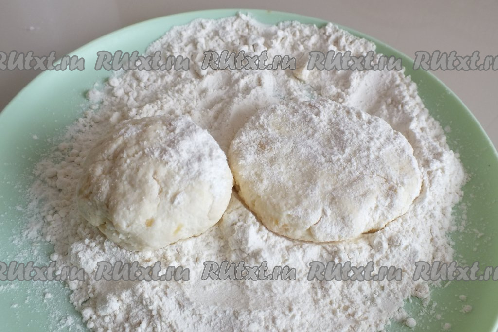 В просторную тарелку насыпьте 4 столовые ложки муки (в этой муке будем панировать сырники). Зачерпните столовой ложкой творожно-банановое тесто, скатайте из него колобок и слегка обваляйте его в муке, придавая ему форму сырника. Аналогично сформируйте столько сырников, сколько можно одновременно пожарить на сковороде.