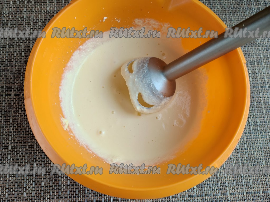 Пробить содержимое миски погружным блендером до получения однородной смеси.