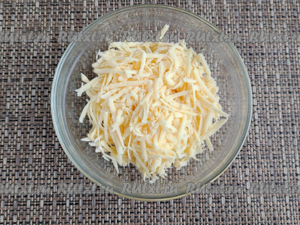 Сыр натереть на крупной тёрке.