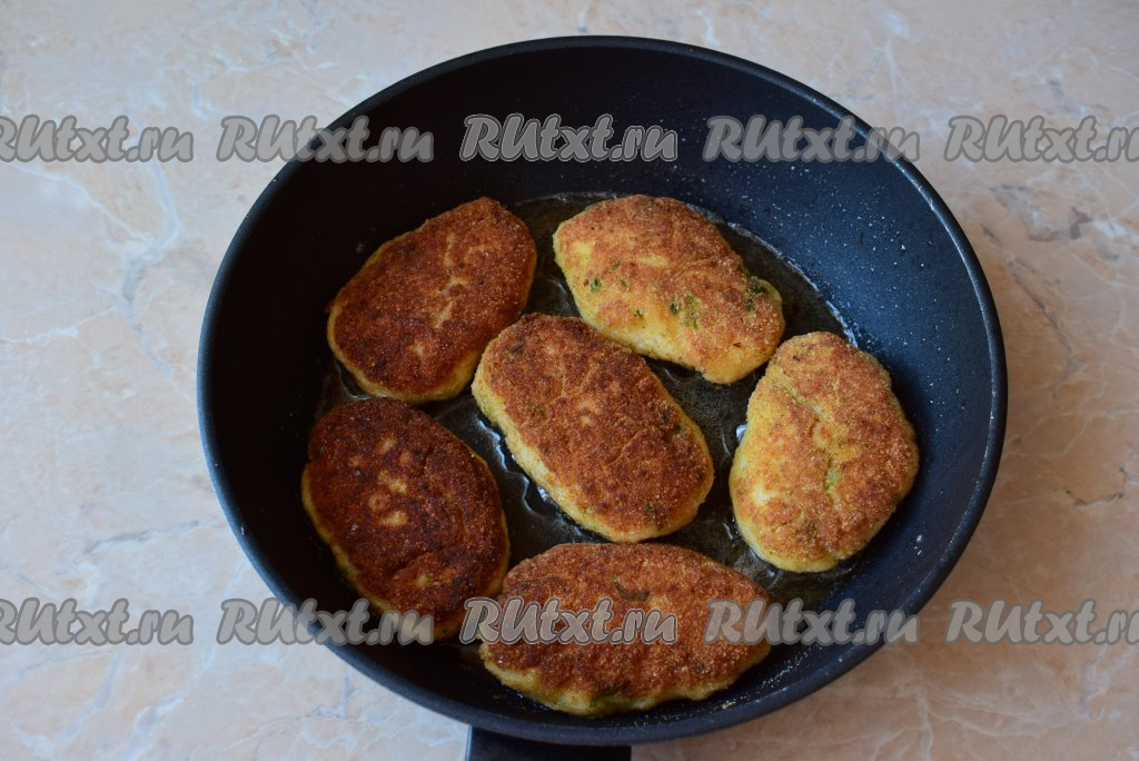 Котлеты должны хорошо подрумяниться. При желании, в сковороду с обжаренными котлетами можно влить немного водички и протушить их под крышкой в течение 5-10 минут.