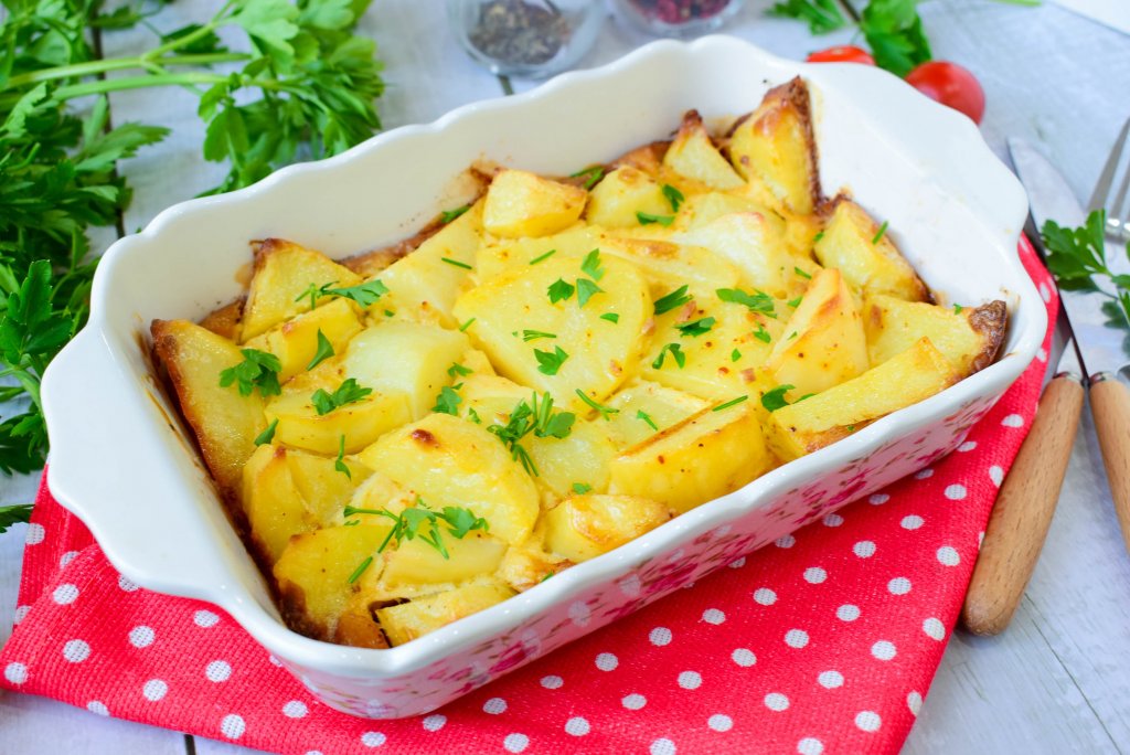 Готовый картофель станет мягким и слегка подрумяненным. Извлеките его из духовки и подавайте к столу. По желанию, можно добавить немного свежей зелени!