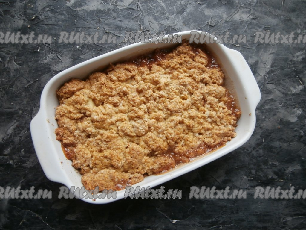 Выпекать яблочный крамбл в разогретой до 180 градусов духовке 30-40 минут.