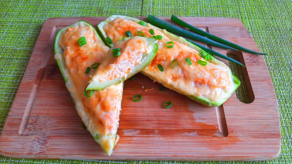 Лодочки из кабачков, запечённые с куриным фаршем в духовке, получаются аппетитными, вкусными, достаточно сытными. Это блюдо можно смело назвать диетическим, оно точно не навредит вашей фигуре. Готовьте кабачки по этому рецепту и наслаждайтесь их сочностью!