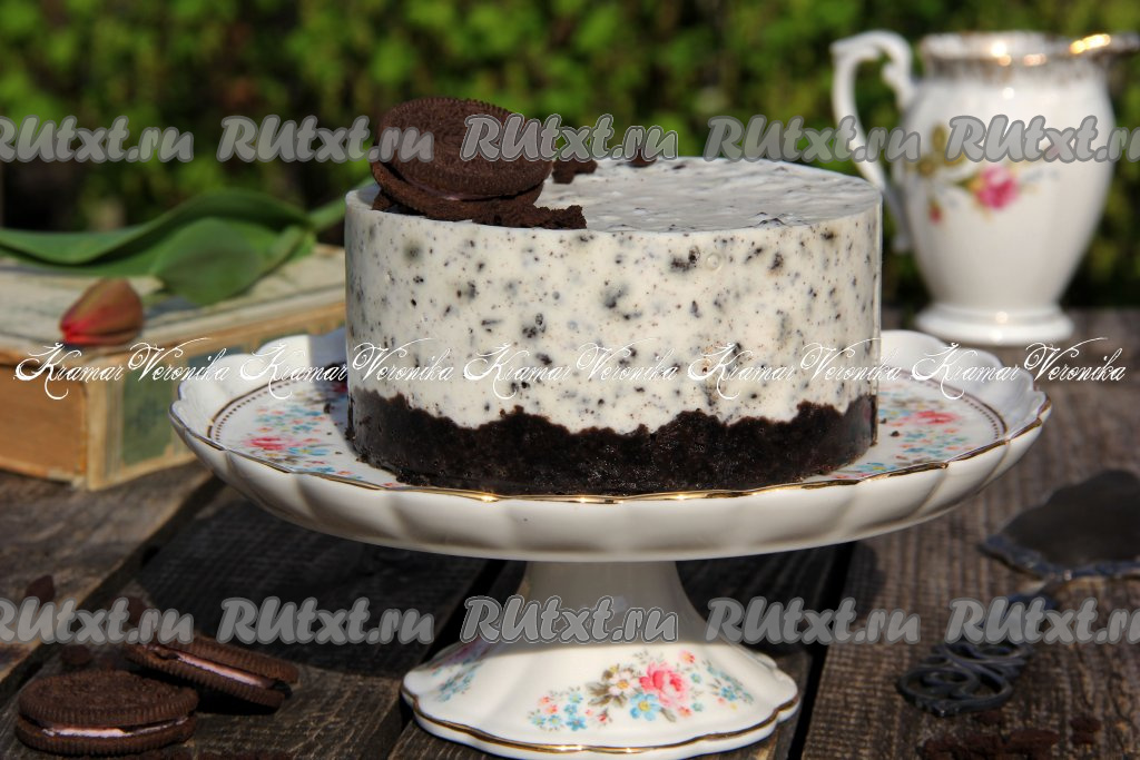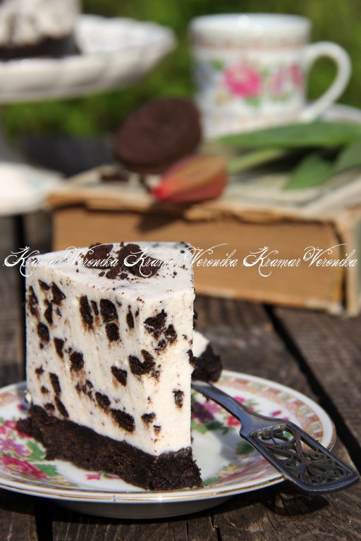 Украсить нежнейший чизкейк по желанию (я украсила печеньем "Орео"). Десерт прекрасно держит форму.