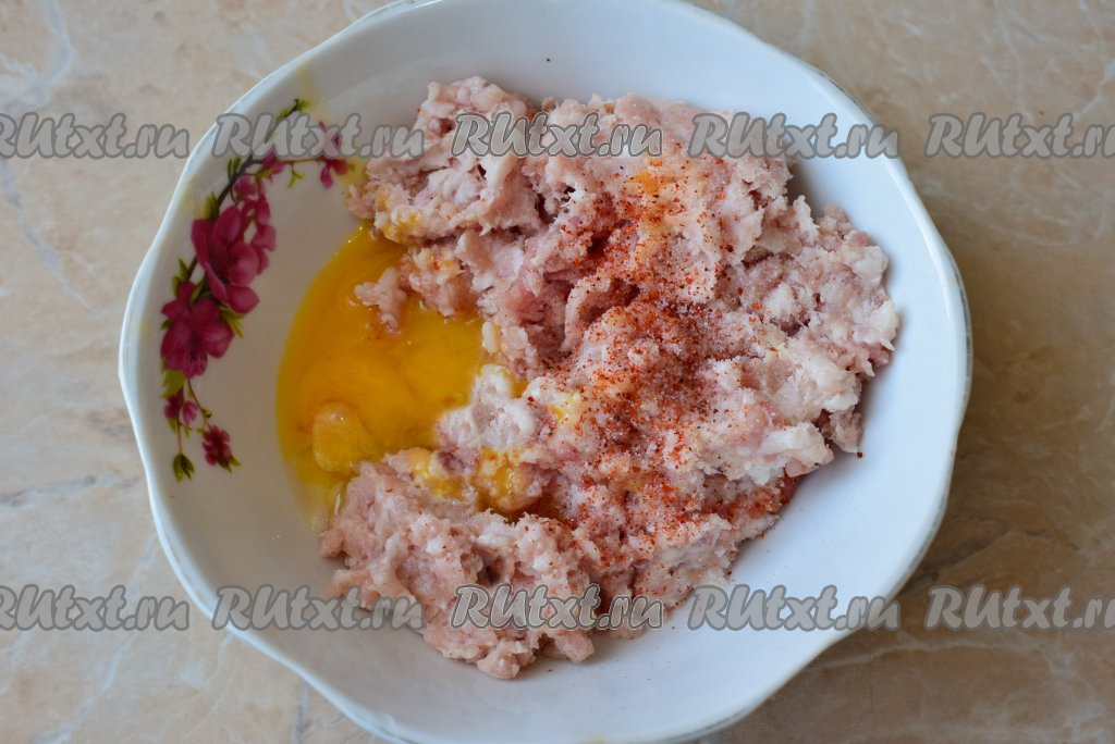 Для приготовления мясных шариков можно взять любой фарш, купленный в магазине, или полученный в домашних условиях из мяса, прокрученного через мясорубку. Я приготовила фарш, пропустив кусочки свинины через мясорубку. Выложите мясной фарш в глубокую тарелку. Очищенную луковицу пропустите через мясорубку (или натрите на мелкой тёрке). Яйцо и измельчённый лук добавьте к фаршу, сдобрите специями, посолите и тщательно перемешайте получившийся мясной фарш.